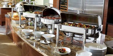 We can work directly with you or your caterer to provide food service items like chafers, plates, silverware, glassware, utensils, carving stations or insulated food servers.